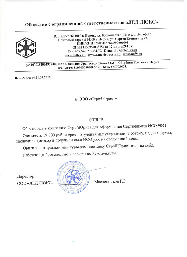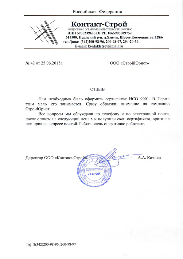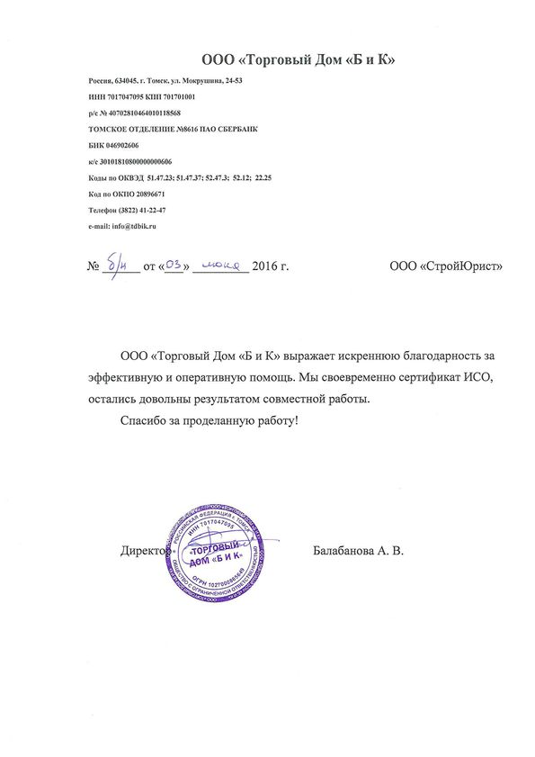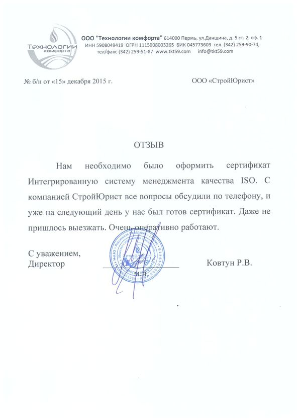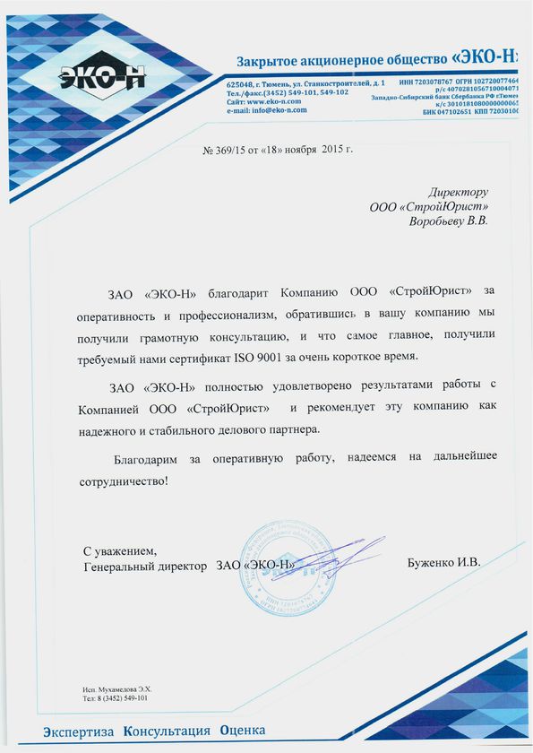 Отзывы клиентов "СтройЮрист" по ISO в Балаково
