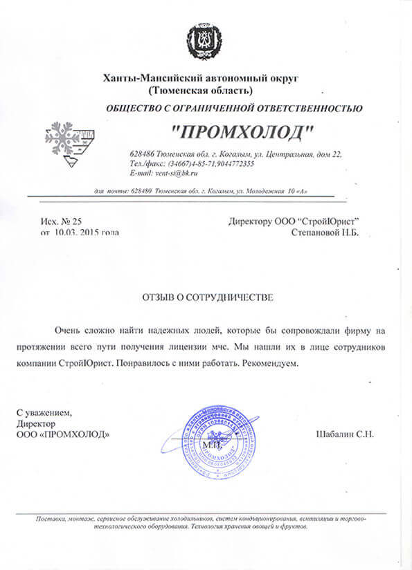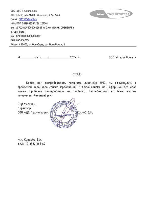 Отзывы клиентов "СтройЮрист" по лицензированию МЧС в Балаково