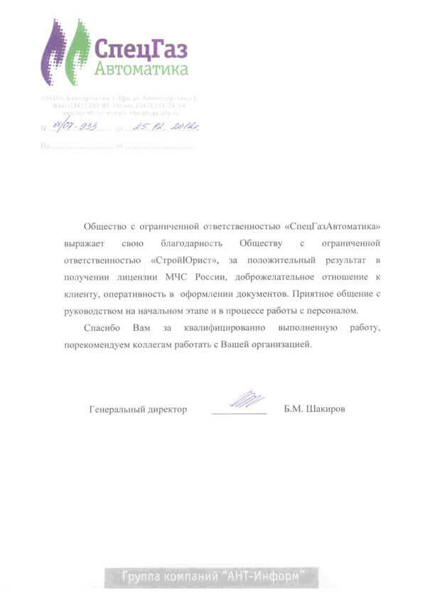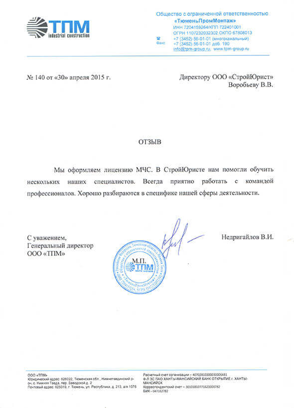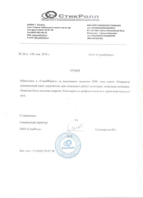 Отзывы клиентов "СтройЮрист" по лицензированию МЧС в Балаково