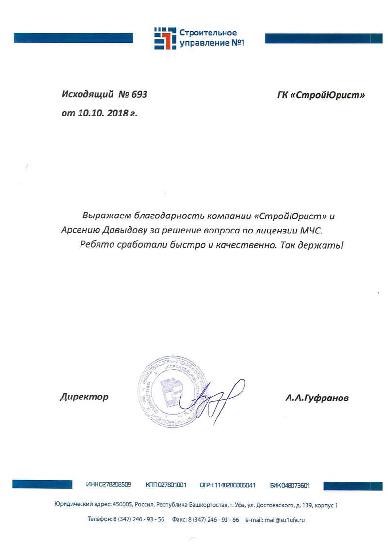 Отзывы клиентов "СтройЮрист" по лицензированию МЧС в Балаково
