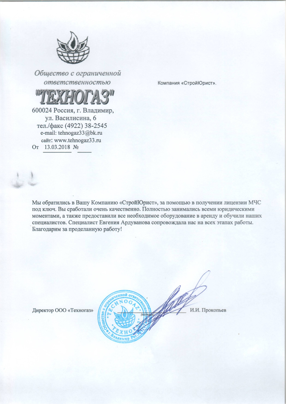 Отзывы клиентов "СтройЮрист" по лицензированию МЧС в Балаково