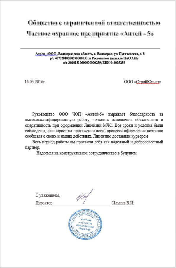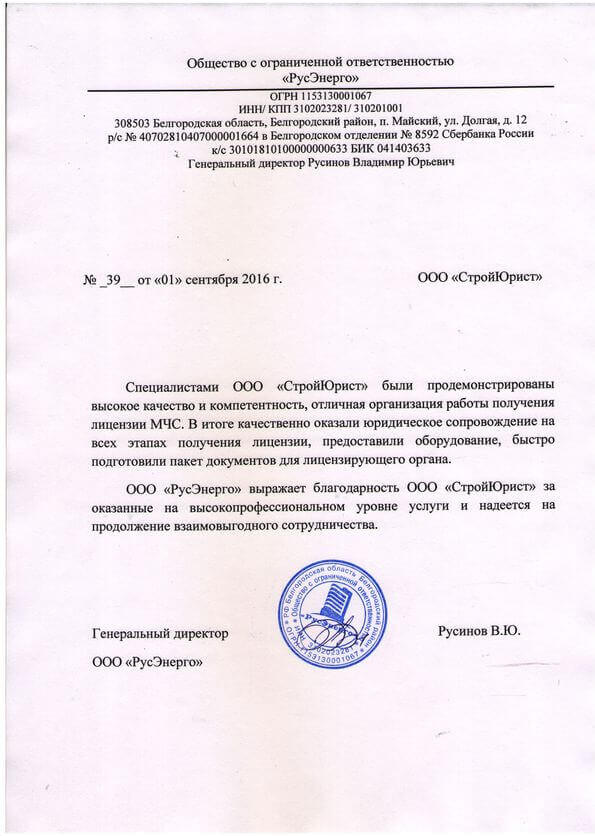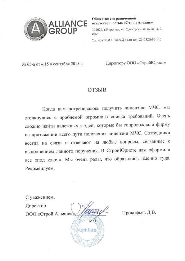 Отзывы клиентов "СтройЮрист" по лицензированию МЧС в Балаково