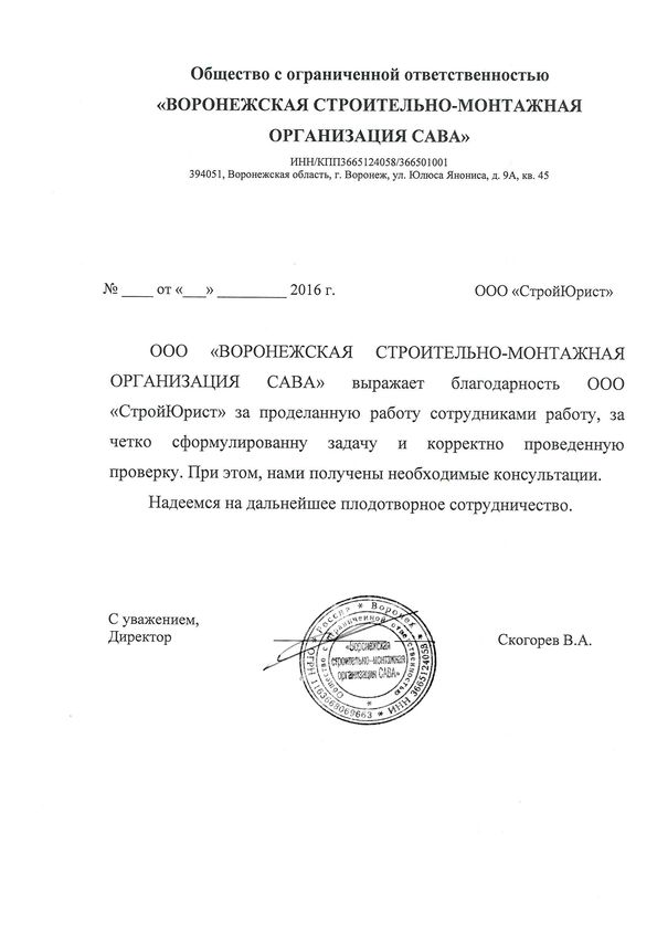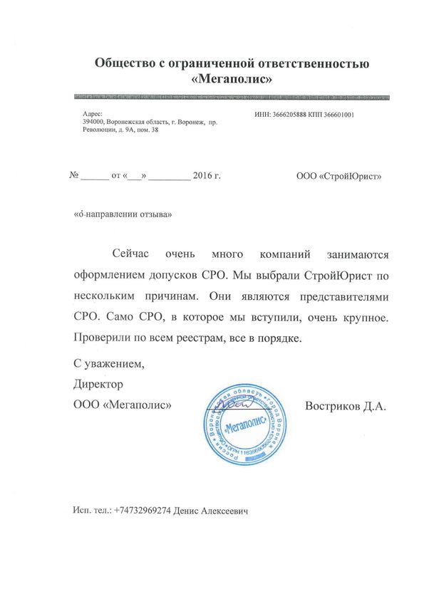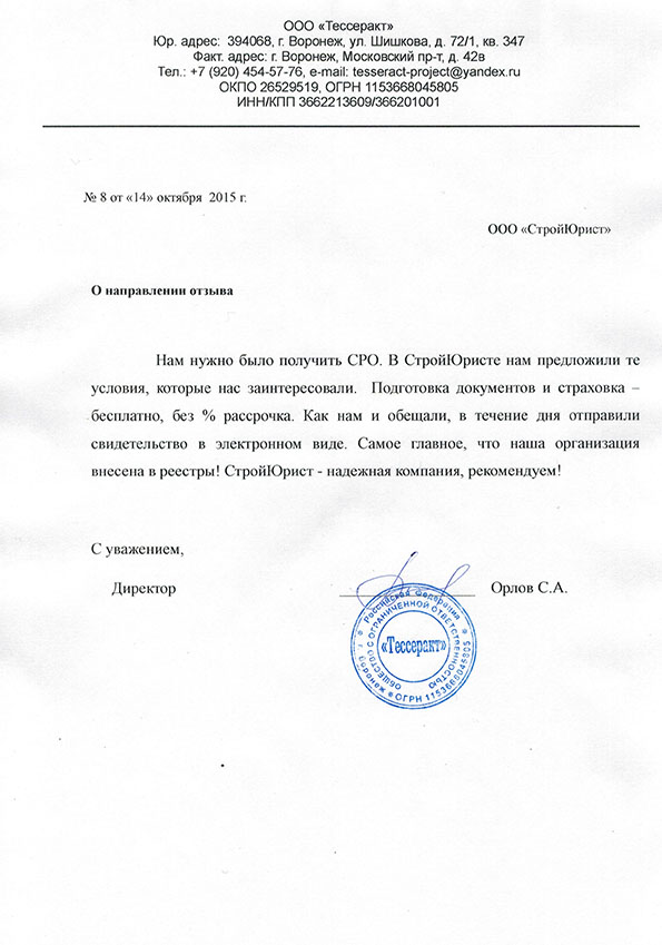 Отзывы клиентов "СтройЮрист" по вступлению в СРО в Балаково