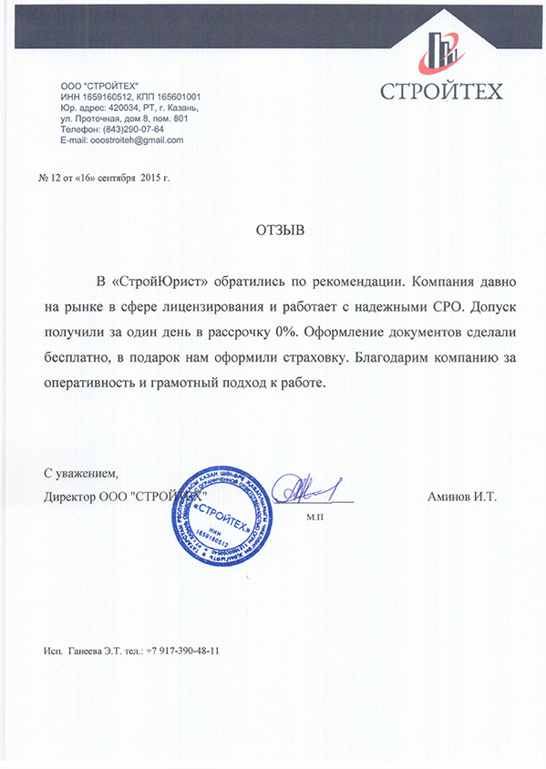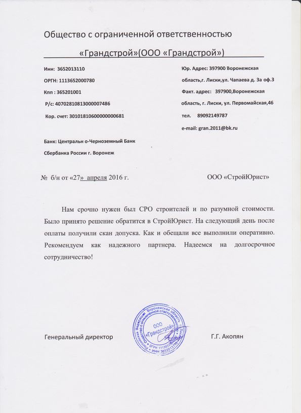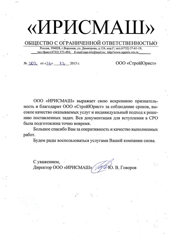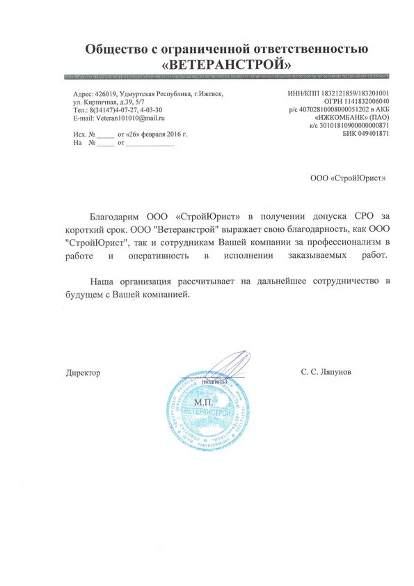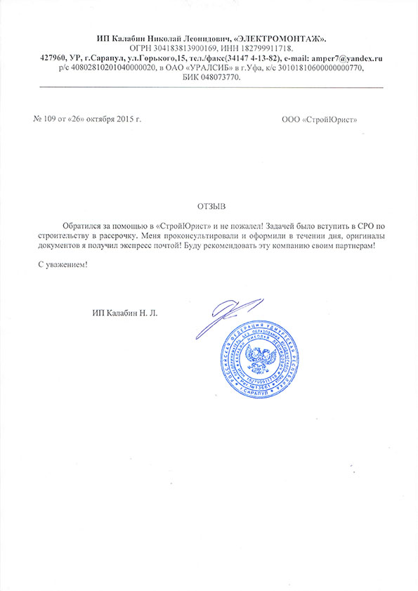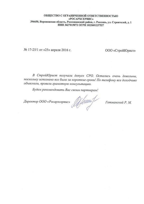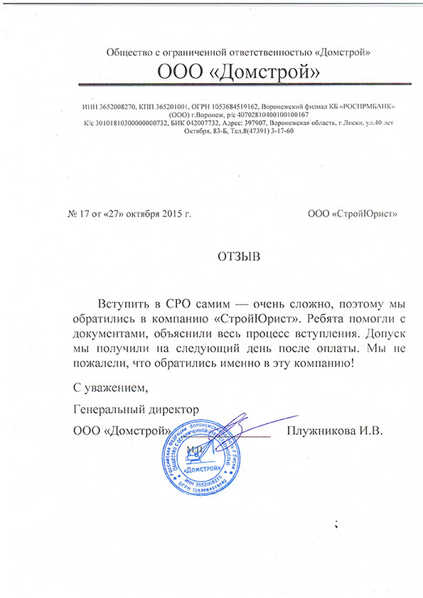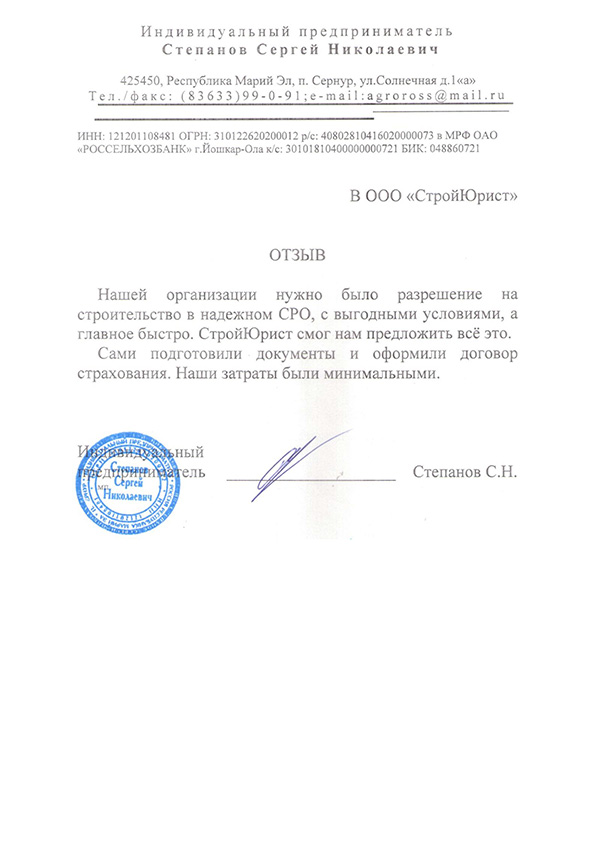 Отзывы клиентов "СтройЮрист" по вступлению в СРО в Балаково