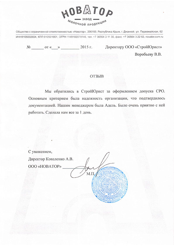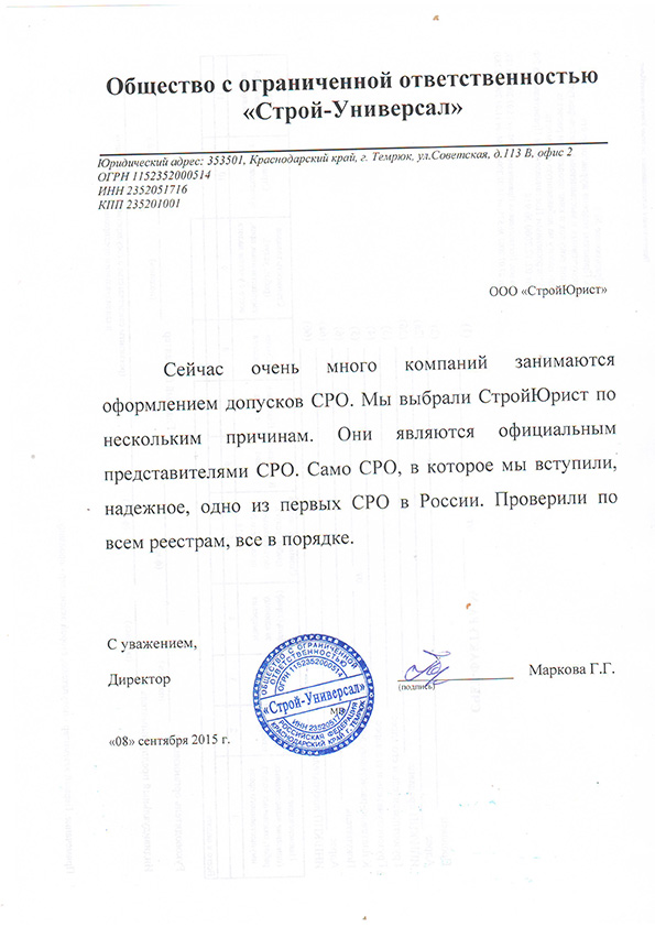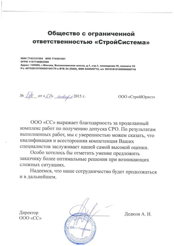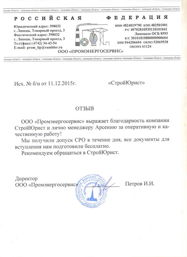 Отзывы клиентов "СтройЮрист" по вступлению в СРО в Балаково