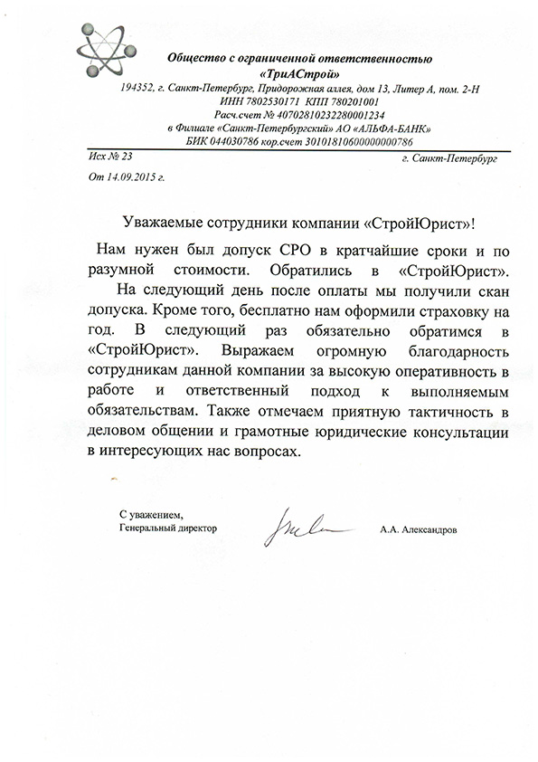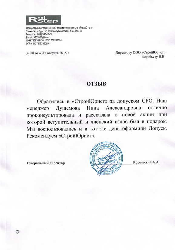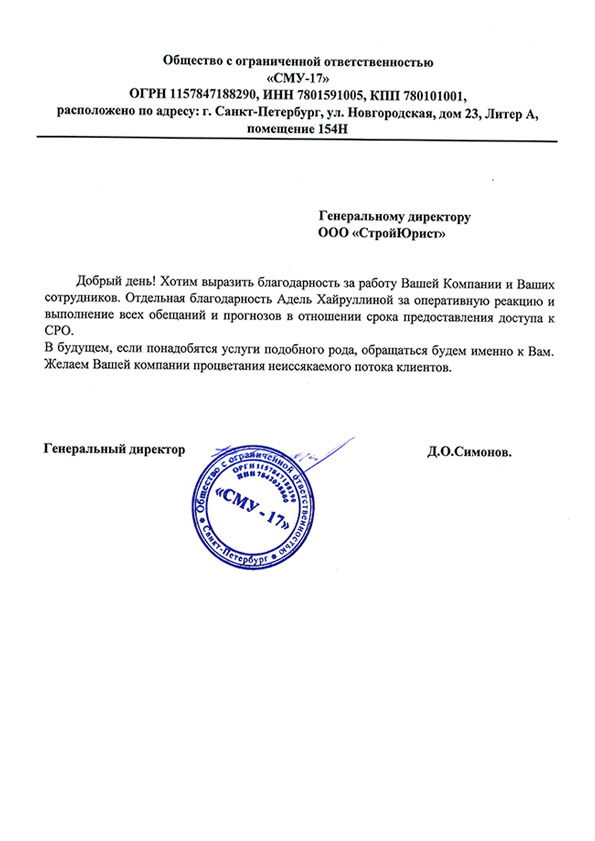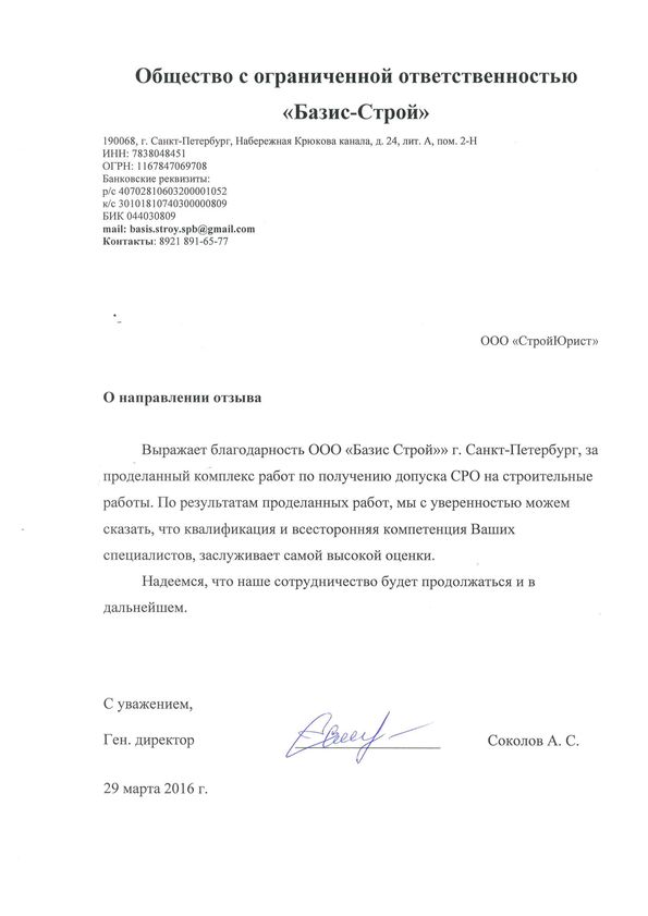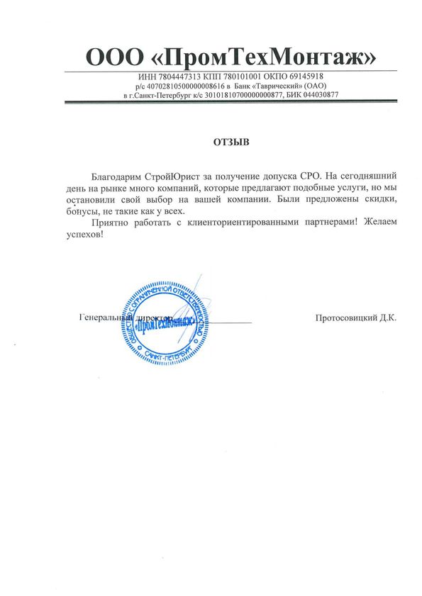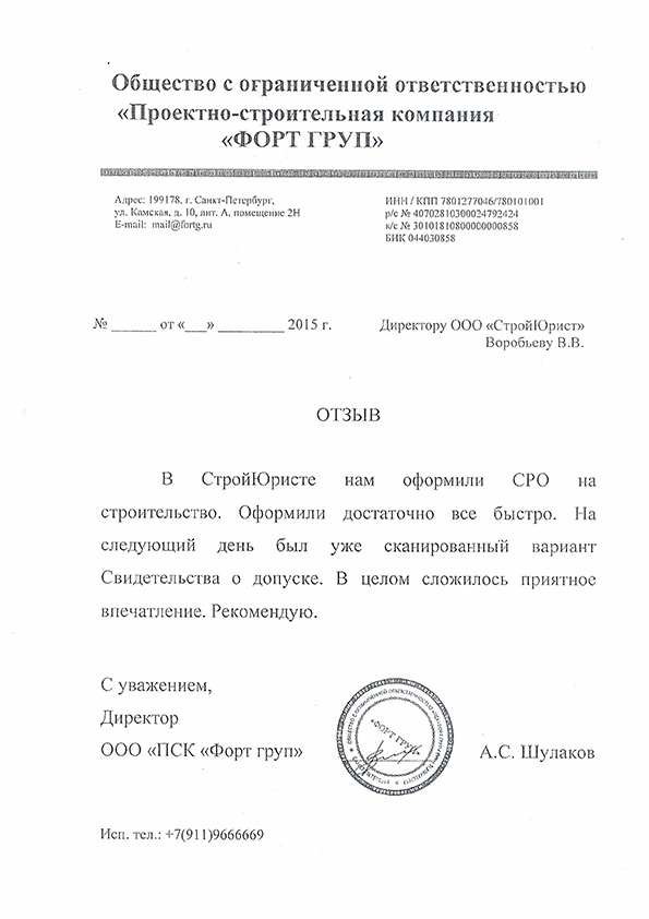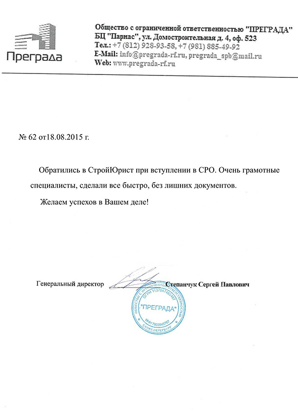 Отзывы клиентов "СтройЮрист" по вступлению в СРО в Балаково