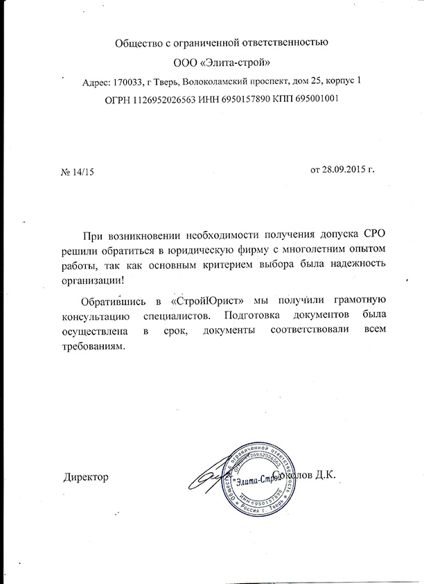Отзывы клиентов "СтройЮрист" по вступлению в СРО в Балаково