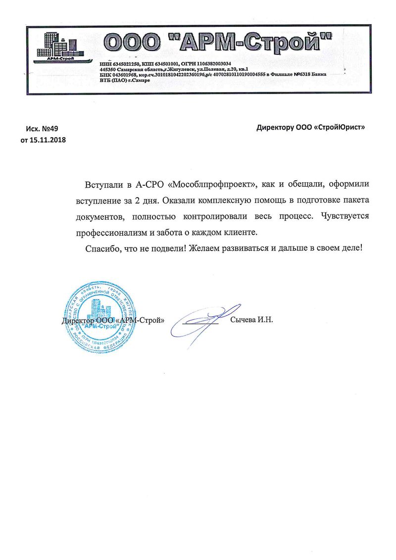 Отзывы клиентов "СтройЮрист" по вступлению в СРО в Балаково