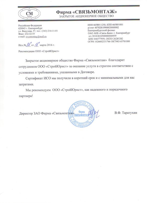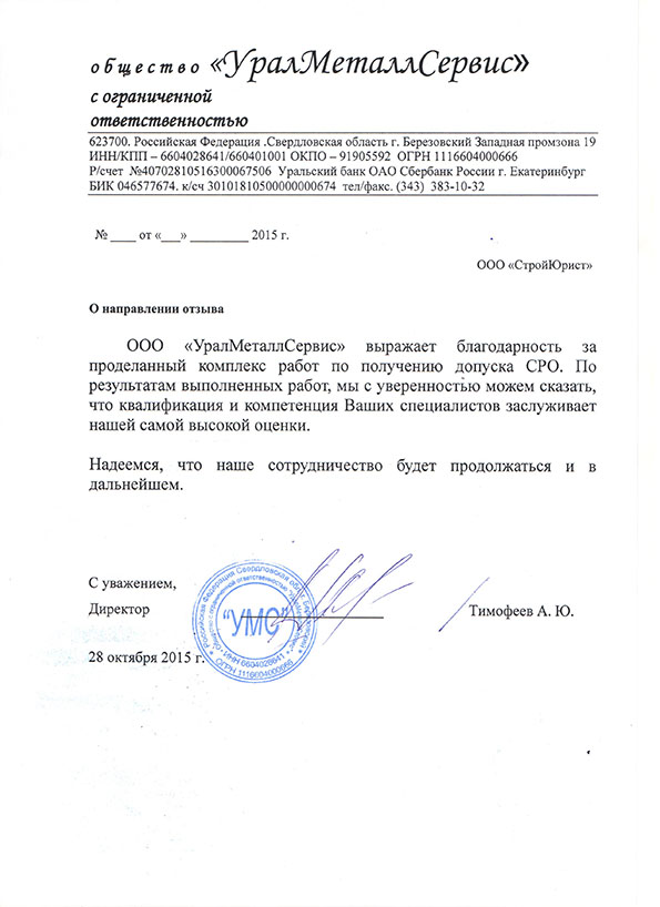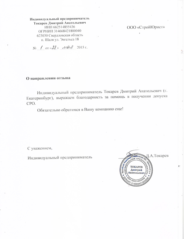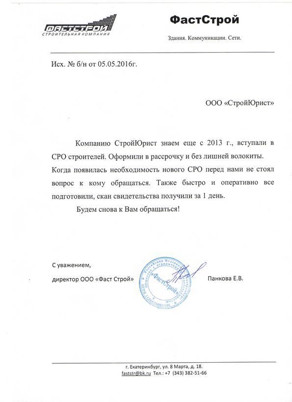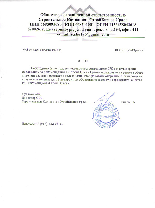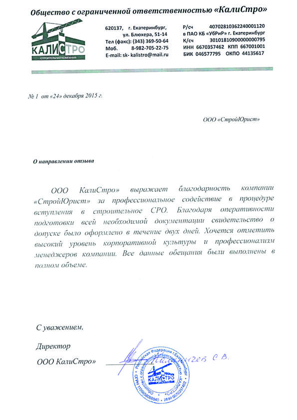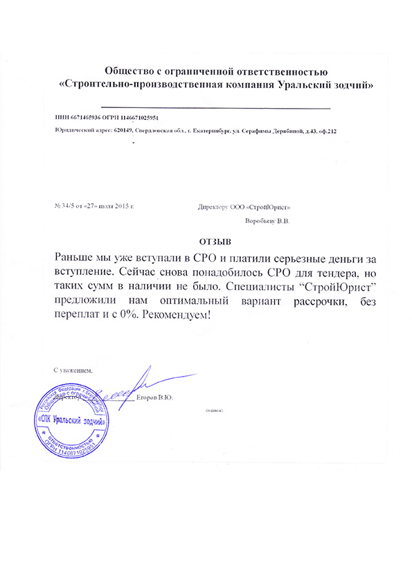 Отзывы клиентов "СтройЮрист" по вступлению в СРО в Балаково
