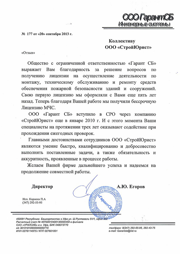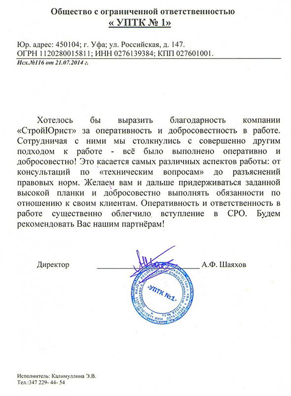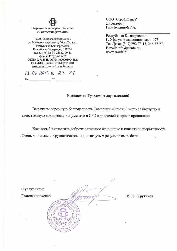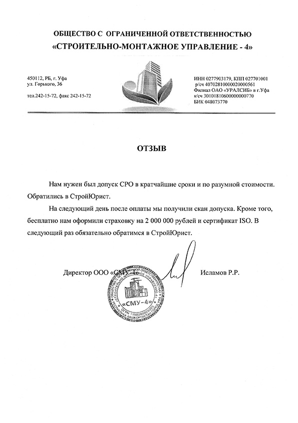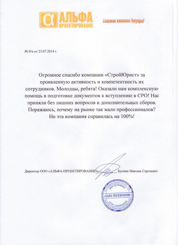 Отзывы клиентов "СтройЮрист" по вступлению в СРО в Балаково